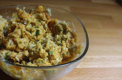 - Add all other stuffing ingredients and mash together but not too fine and set aside
